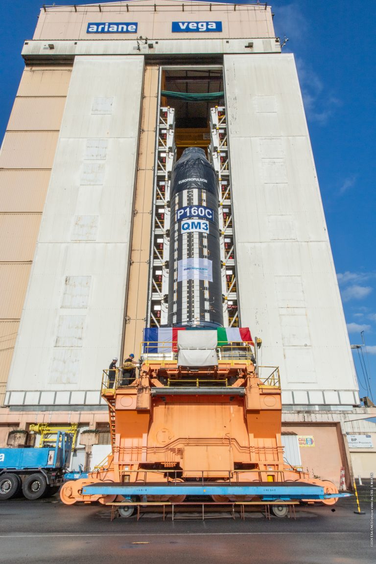 Développé conjointement par ArianeGroup et Avio par le biais d’Europropulsion, le P160C est le moteur à propergol solide équipant à la fois les boosters d’Ariane 6 et l’étage principal de Vega C. Qualifié au sol en avril 2025, ce nouveau moteur représente donc un élément commun aux deux familles européennes de lanceurs, et apportera un important gain de performances par rapport aux versions équipant actuellement les deux lanceurs. Le premier vol d’Ariane 6 qui en sera doté est prévu au deuxième trimestre 2026, dans une configuration à quatre boosters (Ariane 64).