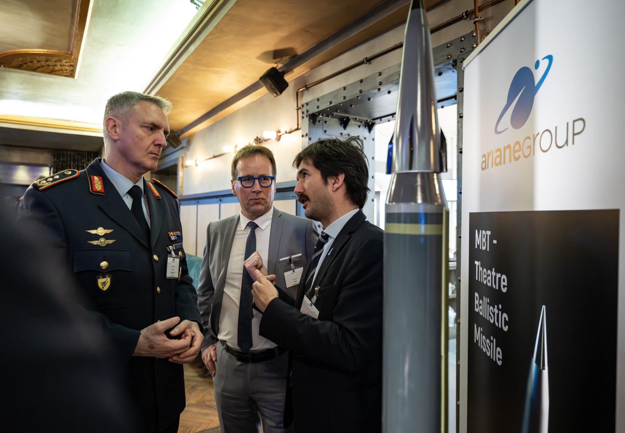 La veille de cette conférence, ArianeGroup avait organisé son propre événement au cours duquel Vincent Pery, Directeur des programmes de Défense, Jens Franzeck, Chief Industrial Officer (CIO), et Pierre Godart, Directeur financier (CFO) d’ArianeGroup, ont accueilli près de 150 invités et présenté un panel de produits de l’entreprise. L’accent a été mis sur les solutions d’étages Astris pour la logistique spatiale (ISOS – In-Space Operations and Services), le service de surveillance spatiale Helix, le système de fusées-sondes SyLEx et le projet de missile balistique de théâtre MBT. Sans oublier, Ariane 6, dont une retransmission du premier vol d’Ariane 64 a permis aux invités de vivre en direct un spectacle exceptionnel et un succès de taille dans la vie du lanceur lourd européen.
