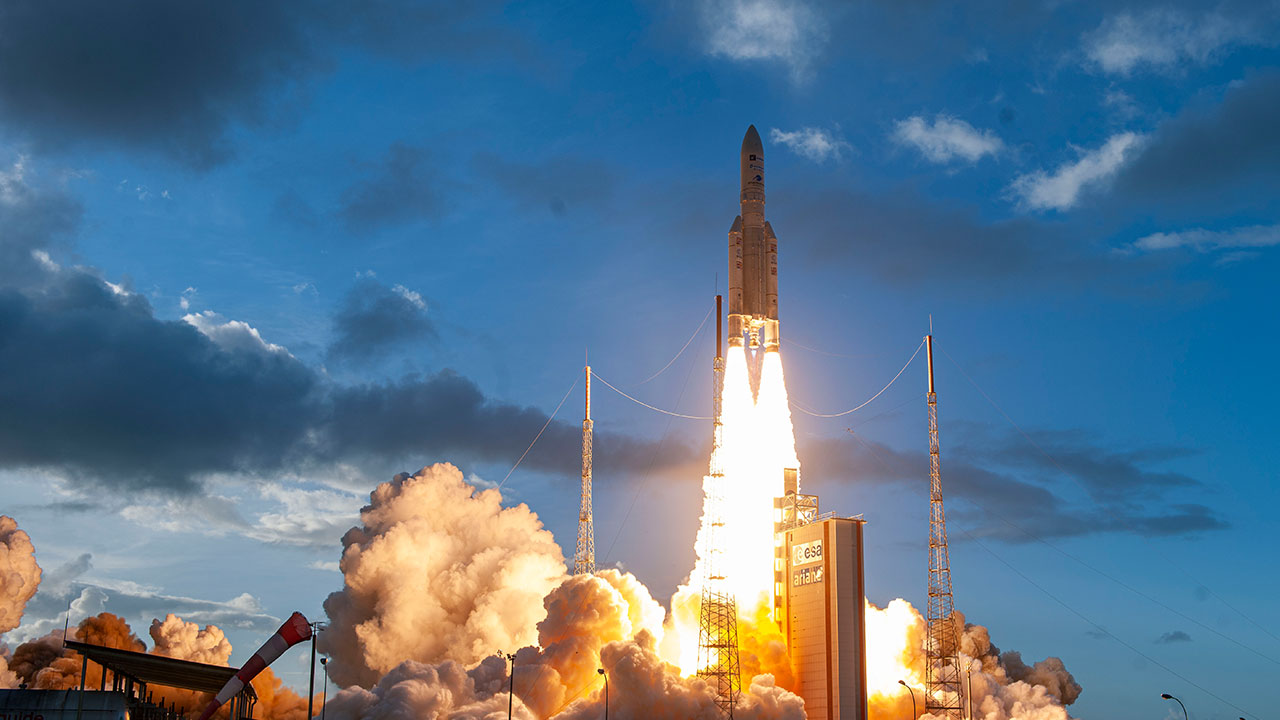 Ariane 5 is a program of the European Space Agency (ESA), carried out in cooperation between public institutions and industry. Marketed and operated by Arianespace, the Ariane 5 launches take place from the Guiana Space Centre in Kourou, with the support of teams from the French space agency CNES.