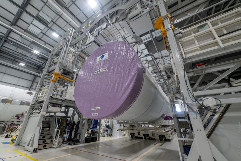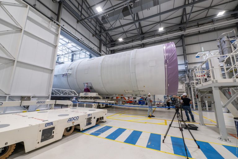 Following integration and very last assembly and tests, the completed central core will be transferred to the launch pad using automated guided vehicles. There in due course it will be joined its boosters and upper composite, the fairing with the payload inside stacked on the launch vehicle adaptor. And then it’s heading for lift-off!