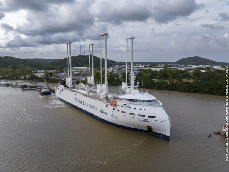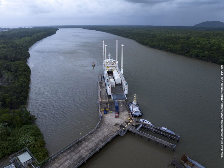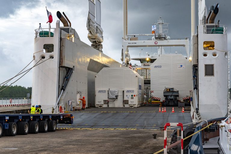 After a 7,000-kilometre voyage across the Atlantic Ocean on board the Canopée freighter ship, the main and upper stages of the second Ariane 6 launcher have arrived at Europe’s Spaceport in Kourou, French Guiana, where they will be assembled together to form the launcher’s central core. This marks the start of the launch campaign at the Spaceport.