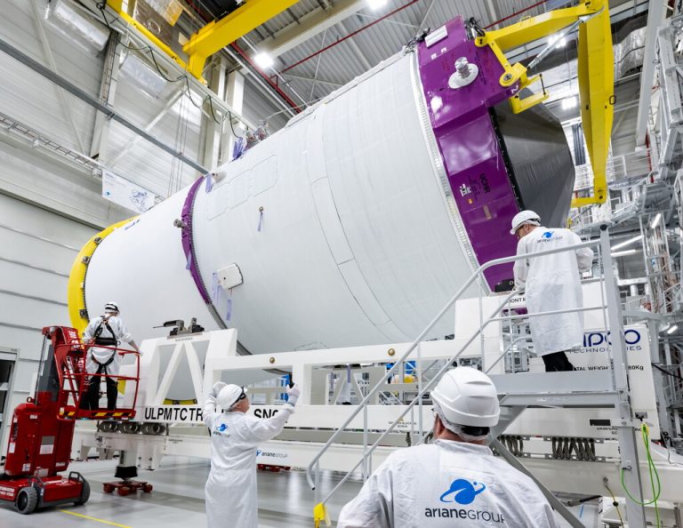 Once they reach the Spaceport in French Guiana, the main and upper stages will be transferred to the Launcher Assembly Building (BAL) on Launch Complex no. 4 (ELA4). There, the two stages will be assembled by ArianeGroup to form the launcher’s central core, which will then be transferred to the launch pad.